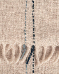 Dieser Ayo Pashmina ist aus Kamelhaar. Seine charakteristische Struktur erhält er durch einzigartige Handarbeit. Zunächst wird die reine ungefärbte Wolle von Hand zu Kaschmirgarn gesponnen. Dieser Prozess lässt ein ganz besonderes Garn entstehen, das sich durch leichte individuelle Unregelmäßigkeit auszeichnet. Anschließend wird das Garn auf einem Handwebstuhl zu einem 100 x 200 cm großem Tuch verwebt. Ein am Rand und durch die Mitte entlanglaufender farbiger Faden bildet das Finish. Bis zur Fertigstellung stecken 4 Tage Handarbeit in jedem Tuch. Das Ergebnis ist ein luxuriös weiches Tuch, das durch seine Machart in Einzigartigkeit besticht und durch seine schmeichelnde Beschaffenheit der jeweiligen Wolle, gepaart mit einer griffigen Struktur, keine Wünsche an Tragekomfort offen lässt.
