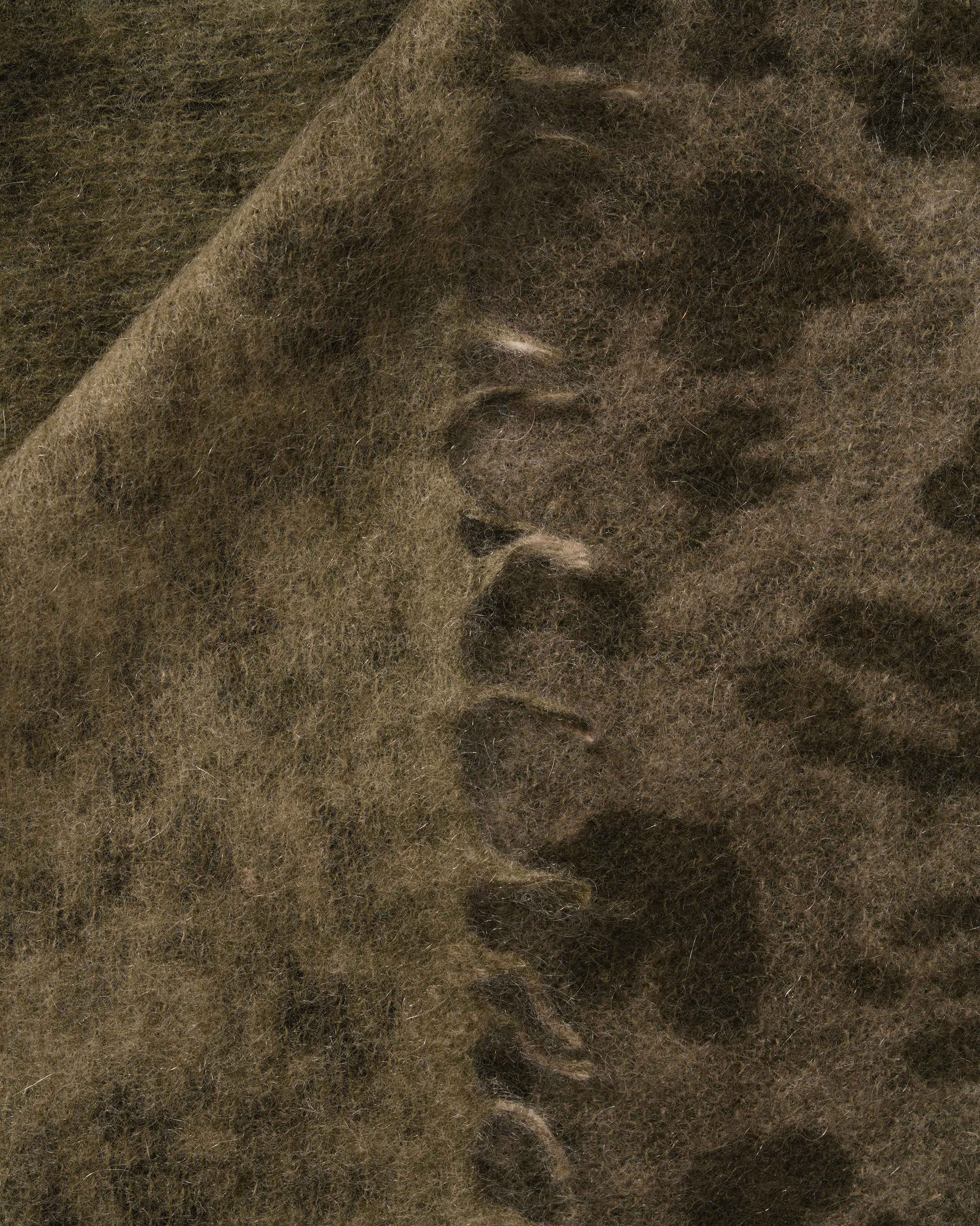 Bedingt durch die feine Strickweise und das Druckverfahren sind die jeweiligen Farbnuancen und Muster auf der Gegenseite dezent sichtbar, was dem Tuch eine harmonische, leicht durchscheinende Wirkung verleiht.